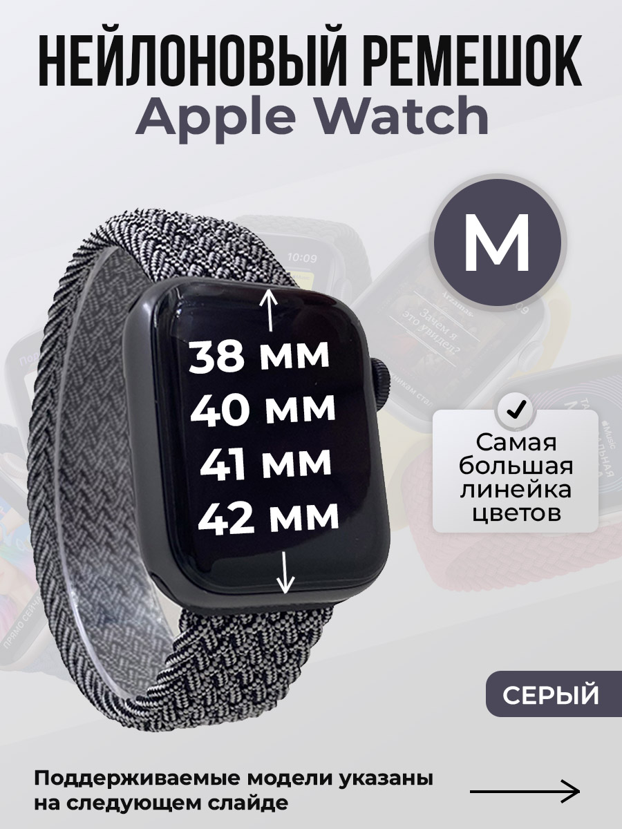 Нейлоновый ремешок для Apple Watch 1-9/SE/SE2/SE3 (38/40/41 мм), 10/11/S10/S11, 42 мм, без застежки, серый, размер M | 123456789