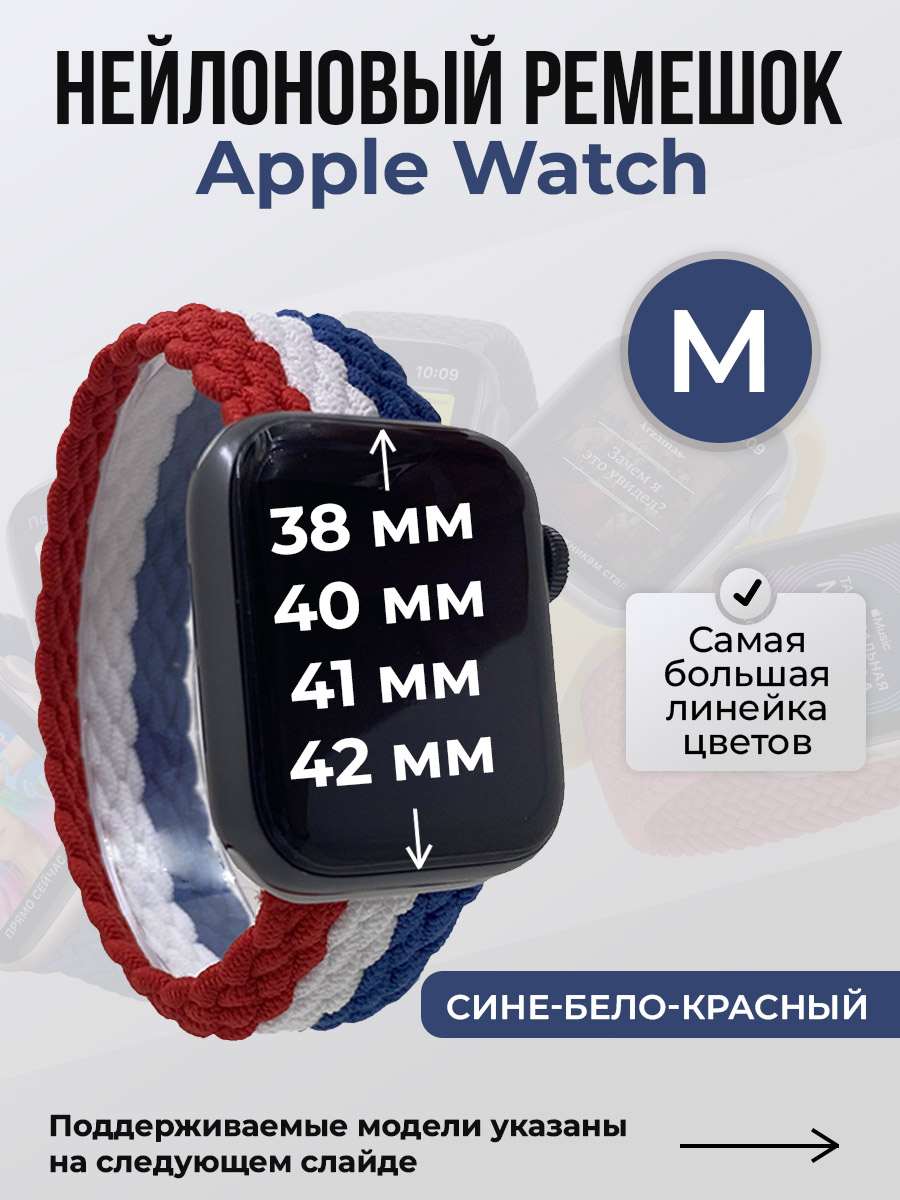 Нейлоновый ремешок для Apple Watch 1-9/SE/SE2/SE3 (38/40/41 мм), 10/11/S10/S11, 42 мм, без застежки, сине-бело-красный, размер M