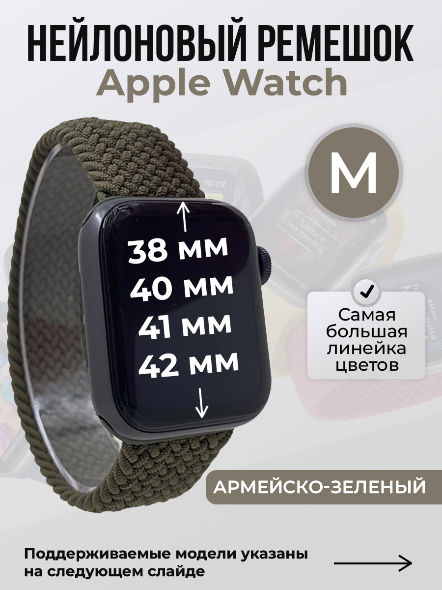 Нейлоновый ремешок для Apple Watch 1-9/SE/SE2/SE3 (38/40/41 мм), 10/11/S10/S11, 42 мм, без застежки, армейско-зеленый, размер M