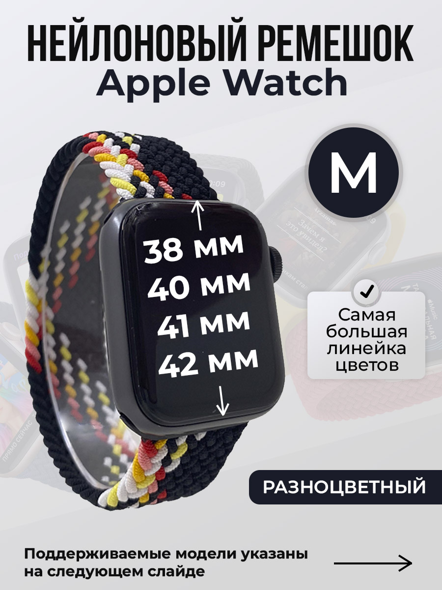Нейлоновый ремешок для Apple Watch 1-9/SE/SE2/SE3 (38/40/41 мм), 10/11/S10/S11, 42 мм, без застежки, разноцветный, размер M | Выбор покупателей