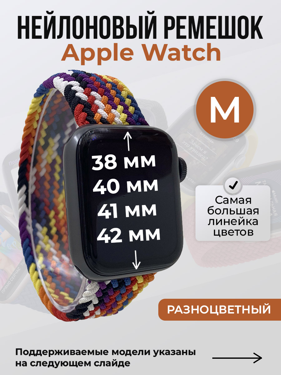 Нейлоновый ремешок для Apple Watch 1-9/SE/SE2/SE3 (38/40/41 мм), 10/11/S10/S11, 42 мм, без застежки, разноцветный, размер M | Супер цены