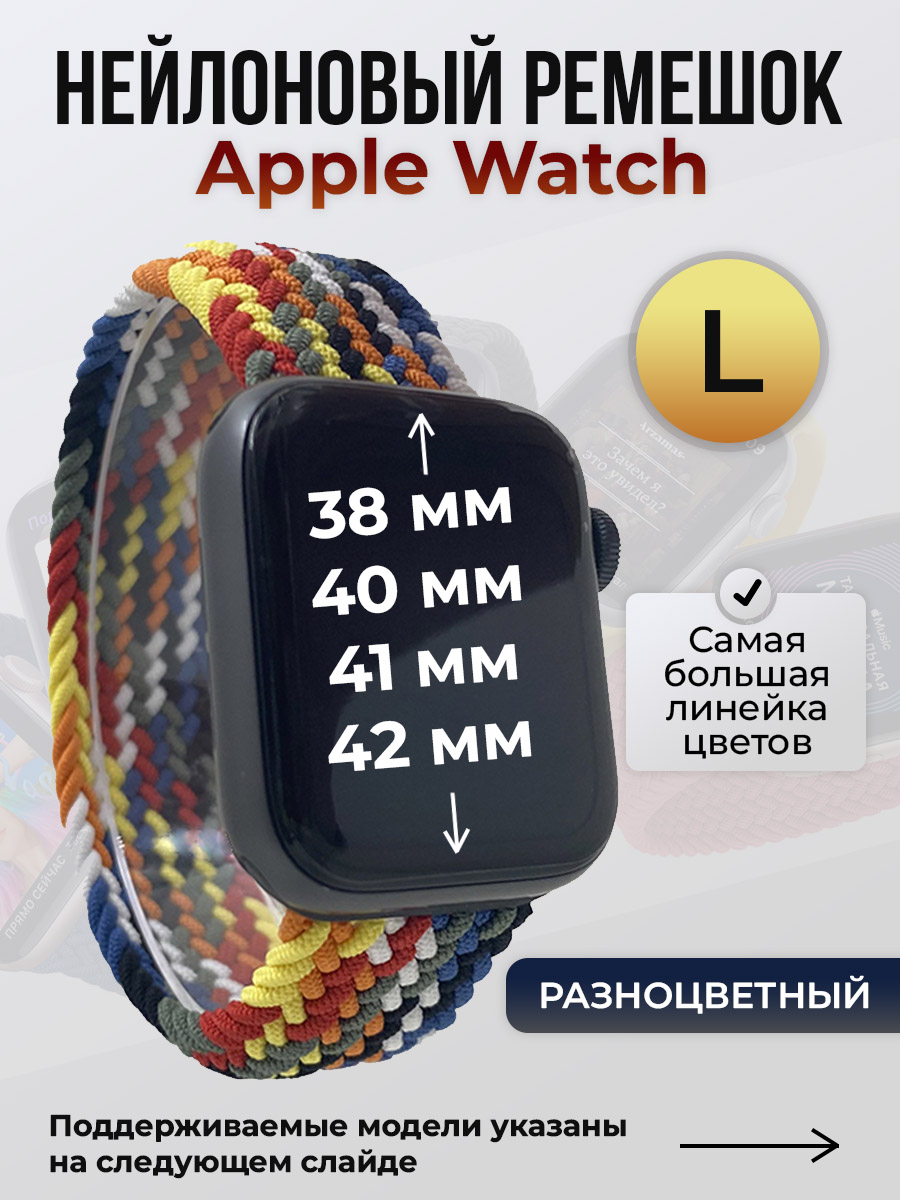 Нейлоновый ремешок для Apple Watch 1-9/SE/SE2/SE3 (38/40/41 мм), 10/11/S10/S11, 42 мм, без застежки, разноцветный, размер L | Выбор покупателей