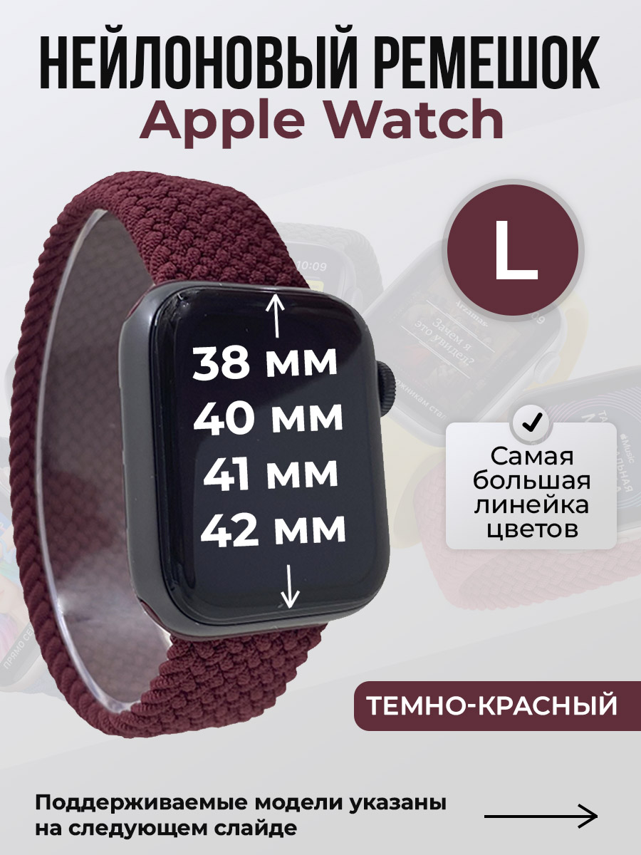 Нейлоновый ремешок для Apple Watch 1-9/SE/SE2/SE3 (38/40/41 мм), 10/11/S10/S11, 42 мм, без застежки, темно-красный, размер L