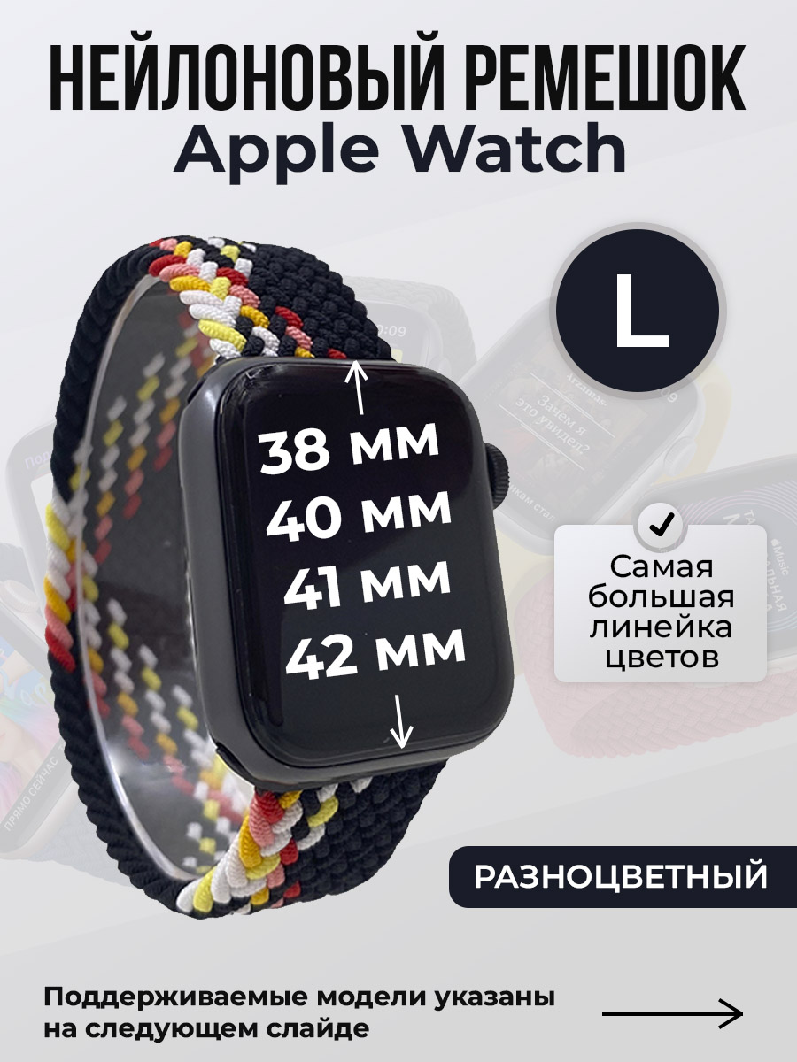 Нейлоновый ремешок для Apple Watch 1-9/SE/SE2/SE3 (38/40/41 мм), 10/11/S10/S11, 42 мм, без застежки, разноцветный, размер L | ГиперМол-качество
