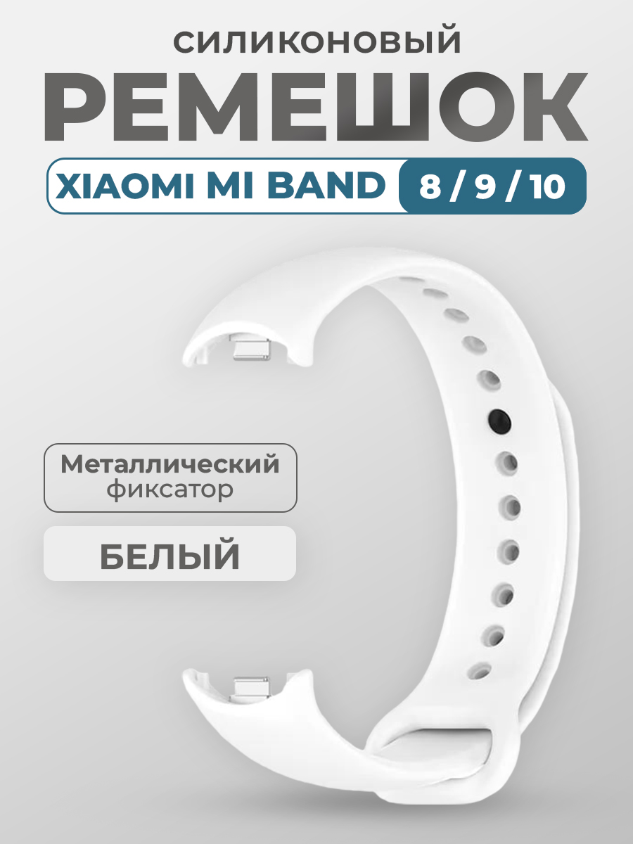 Ремешок для Xiaomi Mi Band 8/9/10, с металлическим фиксатором, белый