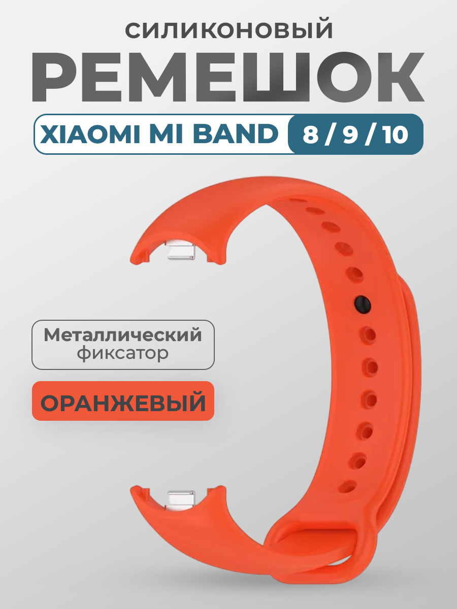 Ремешок для Xiaomi Mi Band 8/9/10, с металлическим фиксатором, оранжевый