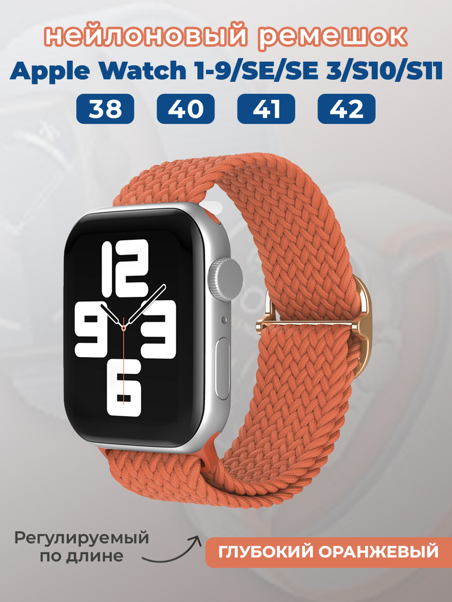 Нейлоновый ремешок для Apple Watch 1-9 / SE (38/40/41 мм), регулируемый по длине, глубокий оранжевый