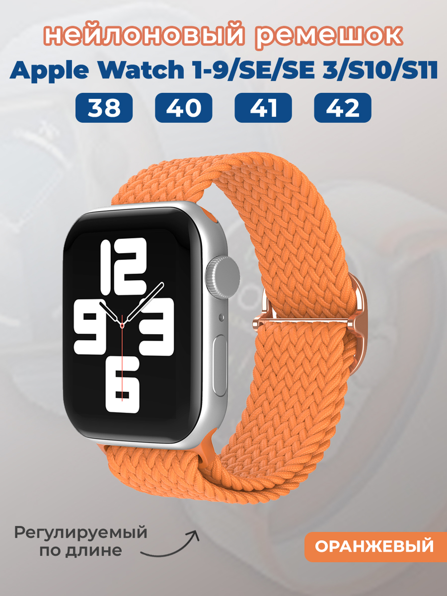 Нейлоновый ремешок для Apple Watch 1-9 / SE (38/40/41 мм), регулируемый по длине, оранжевый
