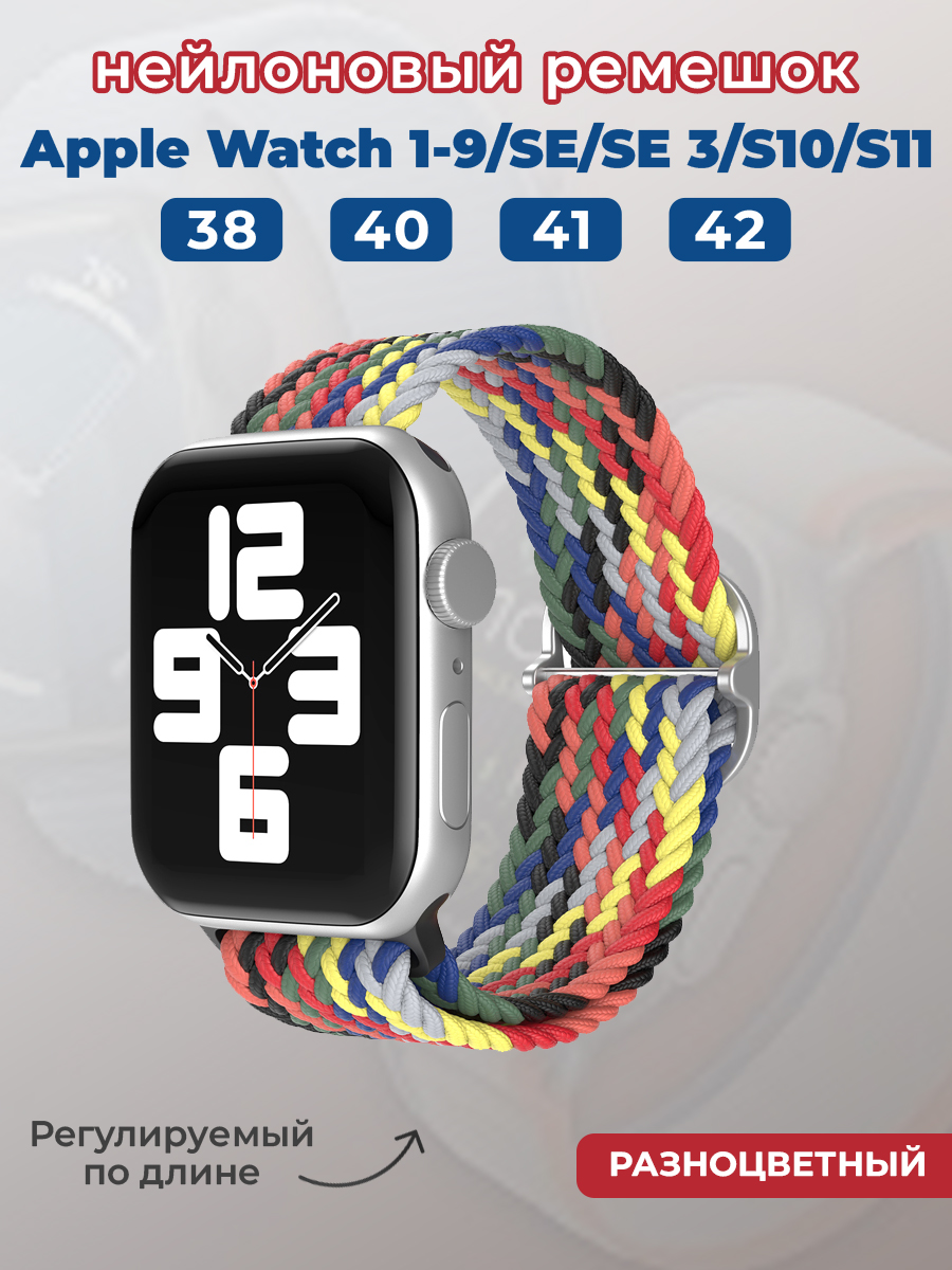 Нейлоновый ремешок для Apple Watch 1-9 / SE (38/40/41 мм), регулируемый по длине, разноцветный | Выбор покупателей