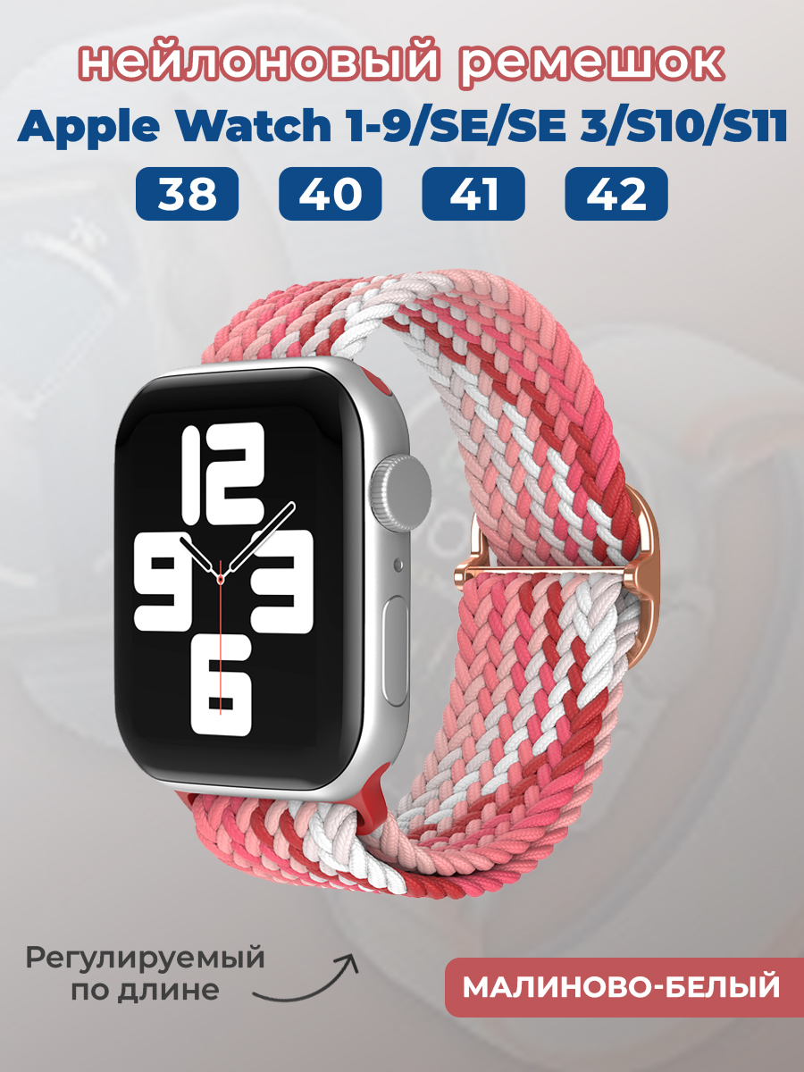 Нейлоновый ремешок для Apple Watch 1-9 / SE (38/40/41 мм), регулируемый по длине, малиново-белый