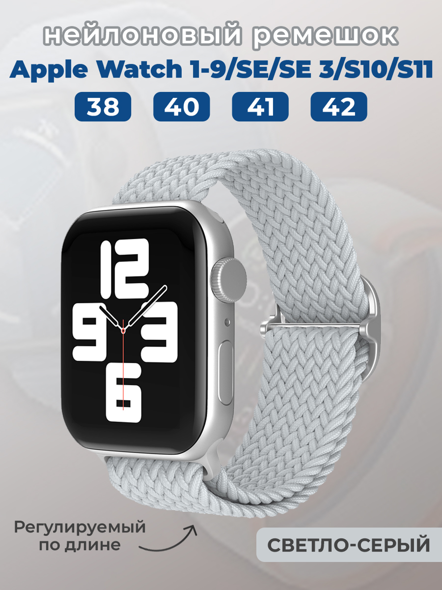 Нейлоновый ремешок для Apple Watch 1-9 / SE / SE 3 (38/40/41 мм), 11, S10/S11 42 мм, регулируемый по длине, светло-серый