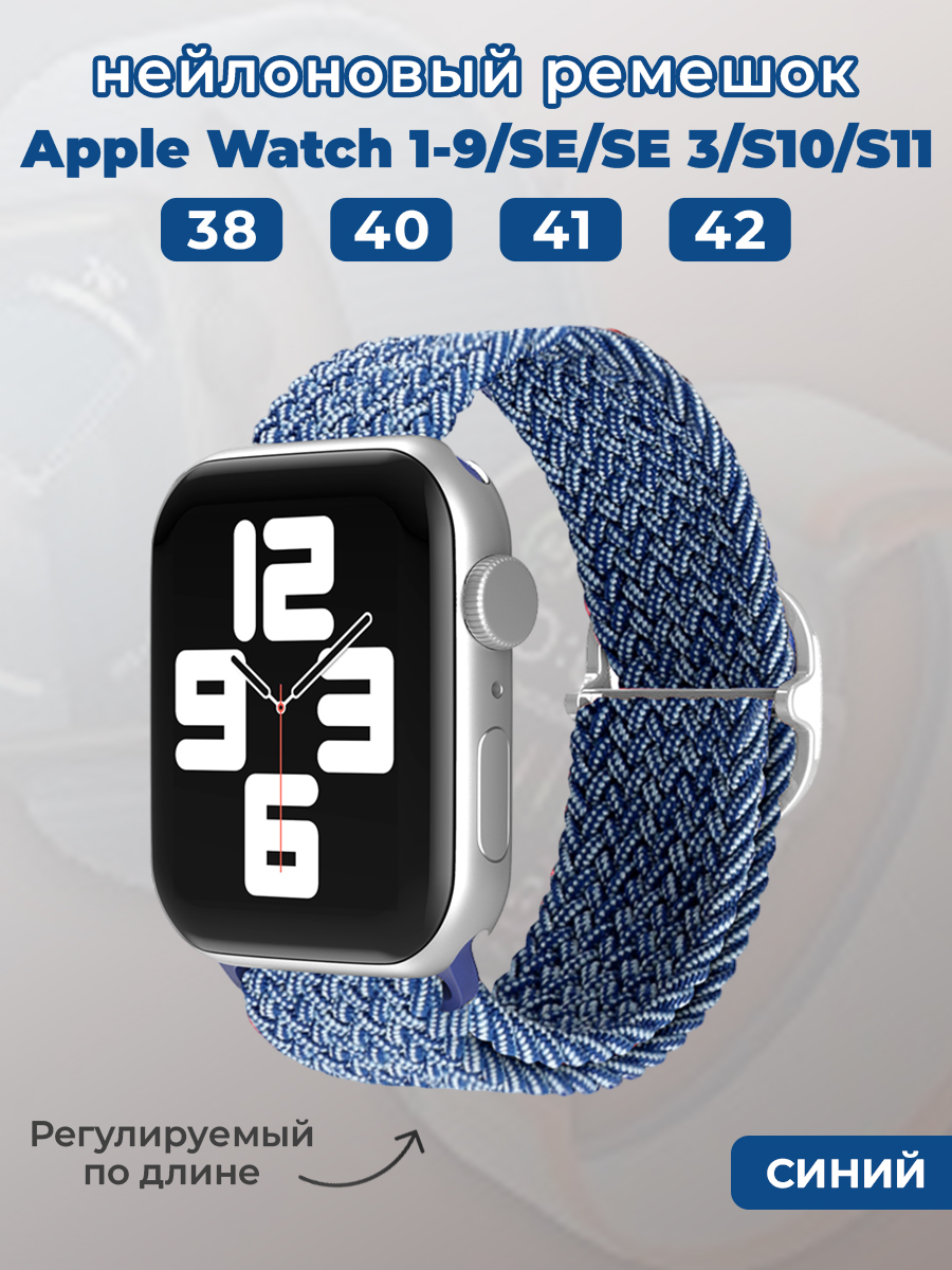 Нейлоновый ремешок для Apple Watch 1-9 / SE / SE 3 (38/40/41 мм), 11, S10/S11 42 мм, регулируемый по длине, синий