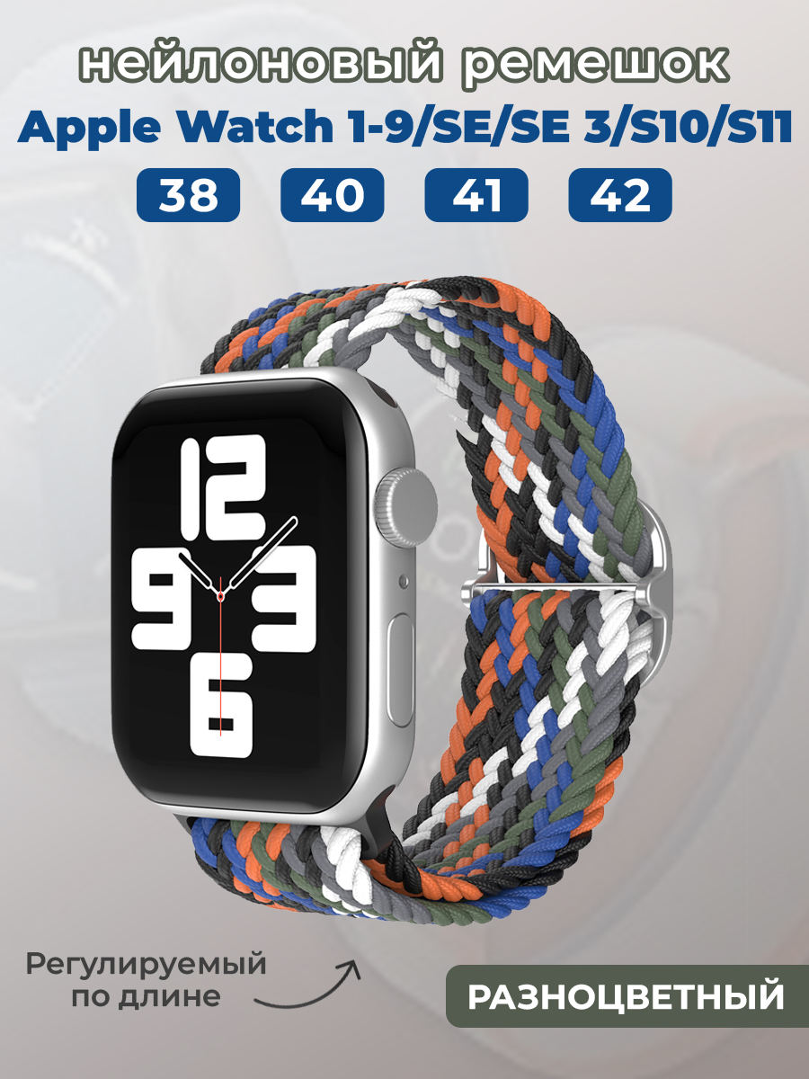 Нейлоновый ремешок для Apple Watch 1-9 / SE / SE 3 (38/40/41 мм), 11, S10/S11 42 мм, регулируемый по длине, разноцветный