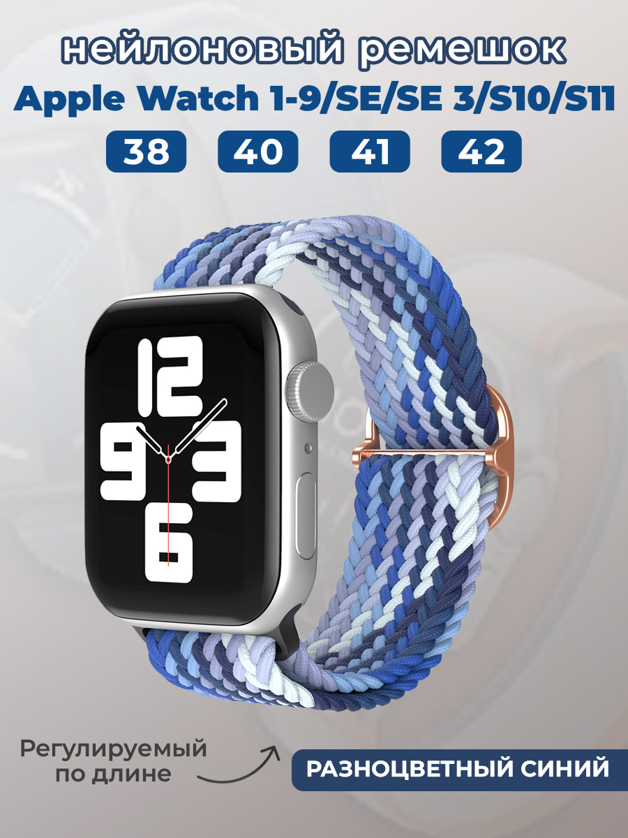 Нейлоновый ремешок для Apple Watch 1-9 / SE / SE 3 (38/40/41 мм), 11, S10/S11 42 мм, регулируемый по длине, разноцветный синий