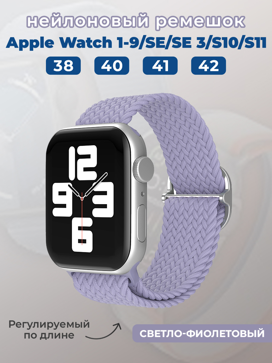 Нейлоновый ремешок для Apple Watch 1-9 / SE / SE 3 (38/40/41 мм), 11, S10/S11 42 мм, регулируемый по длине, светло-фиолетовый