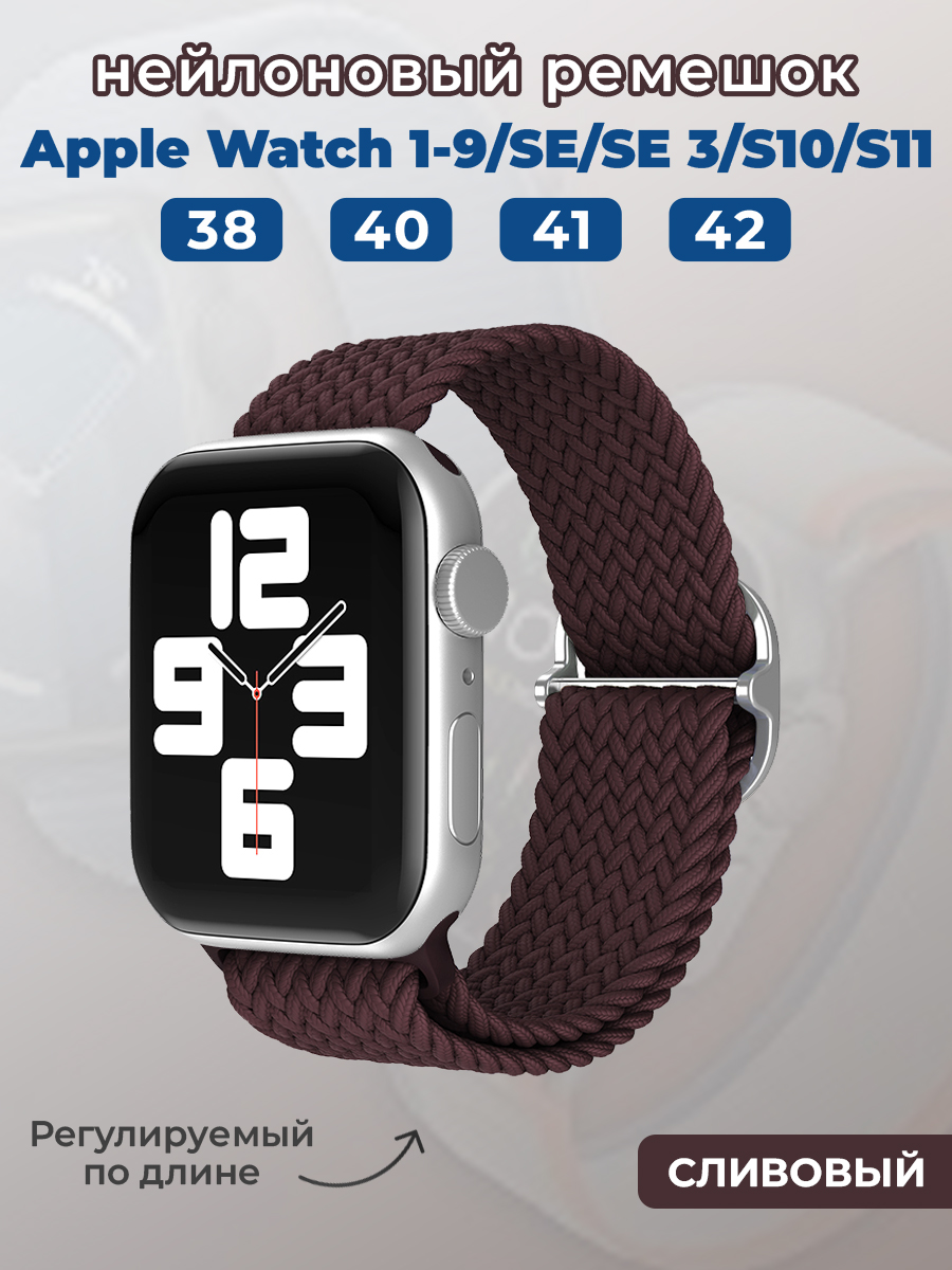 Нейлоновый ремешок для Apple Watch 1-9 / SE / SE 3 (38/40/41 мм), 11, S10/S11 42 мм, регулируемый по длине, сливовый