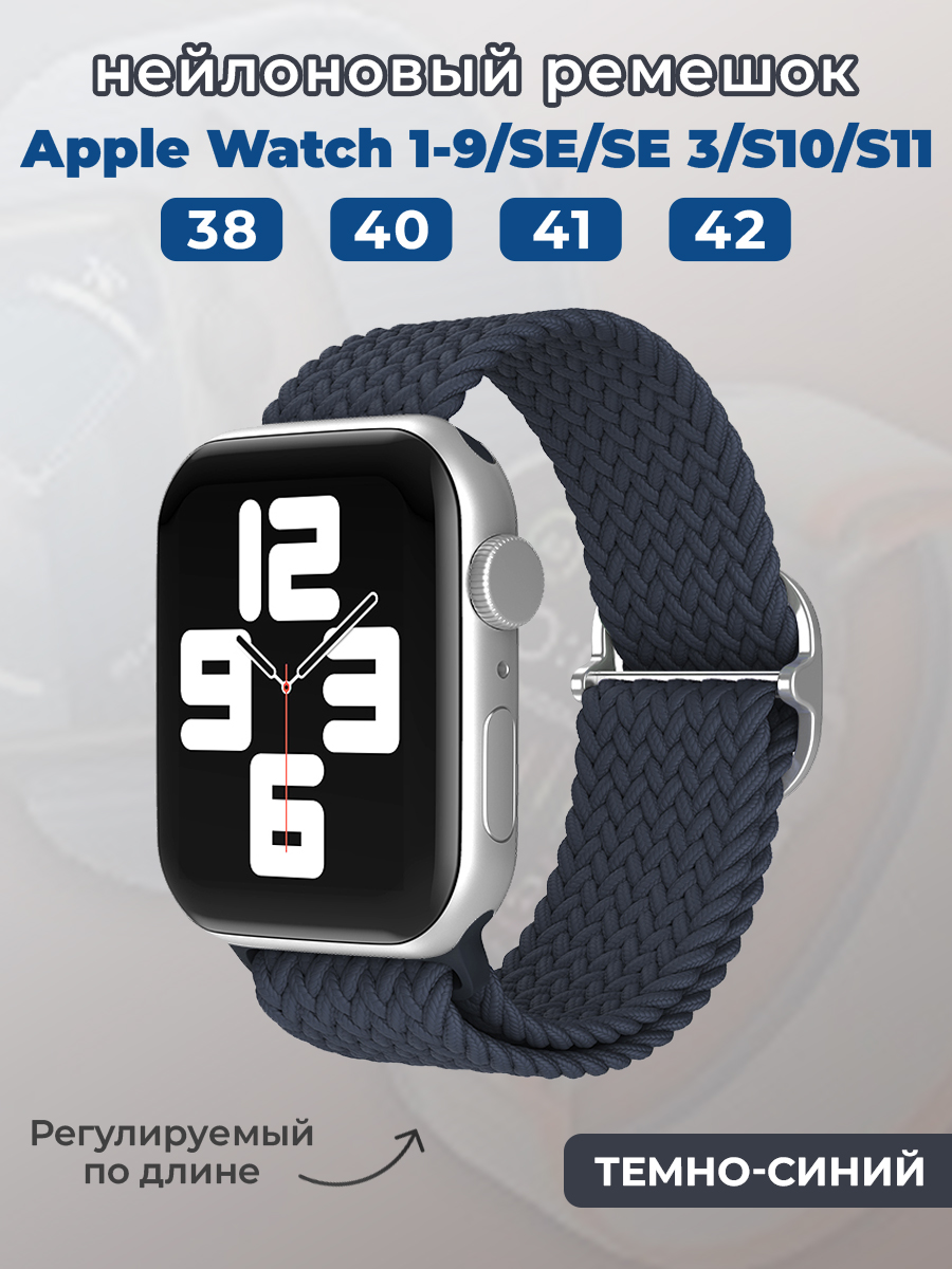 Нейлоновый ремешок для Apple Watch 1-9 / SE / SE 3 (38/40/41 мм), 11, S10/S11 42 мм, регулируемый по длине, темно-синий