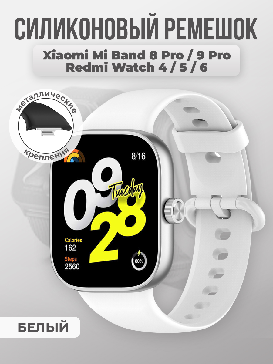 Cиликоновый ремешок для Xiaomi Mi Band 8 Pro/9 Pro и Redmi Watch 4/5/6, белый