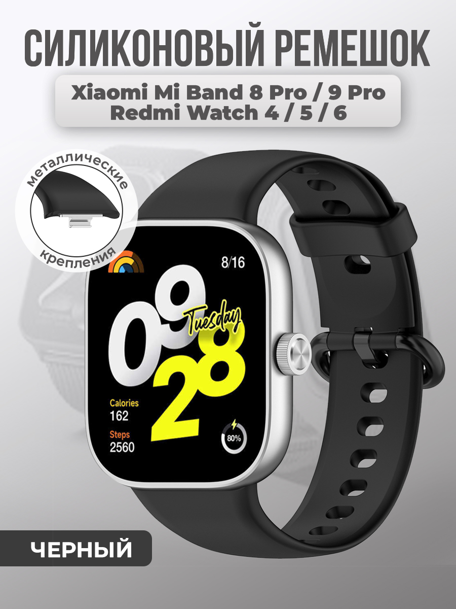 Cиликоновый ремешок для Xiaomi Mi Band 8 Pro/9 Pro и Redmi Watch 4/5/6, черный