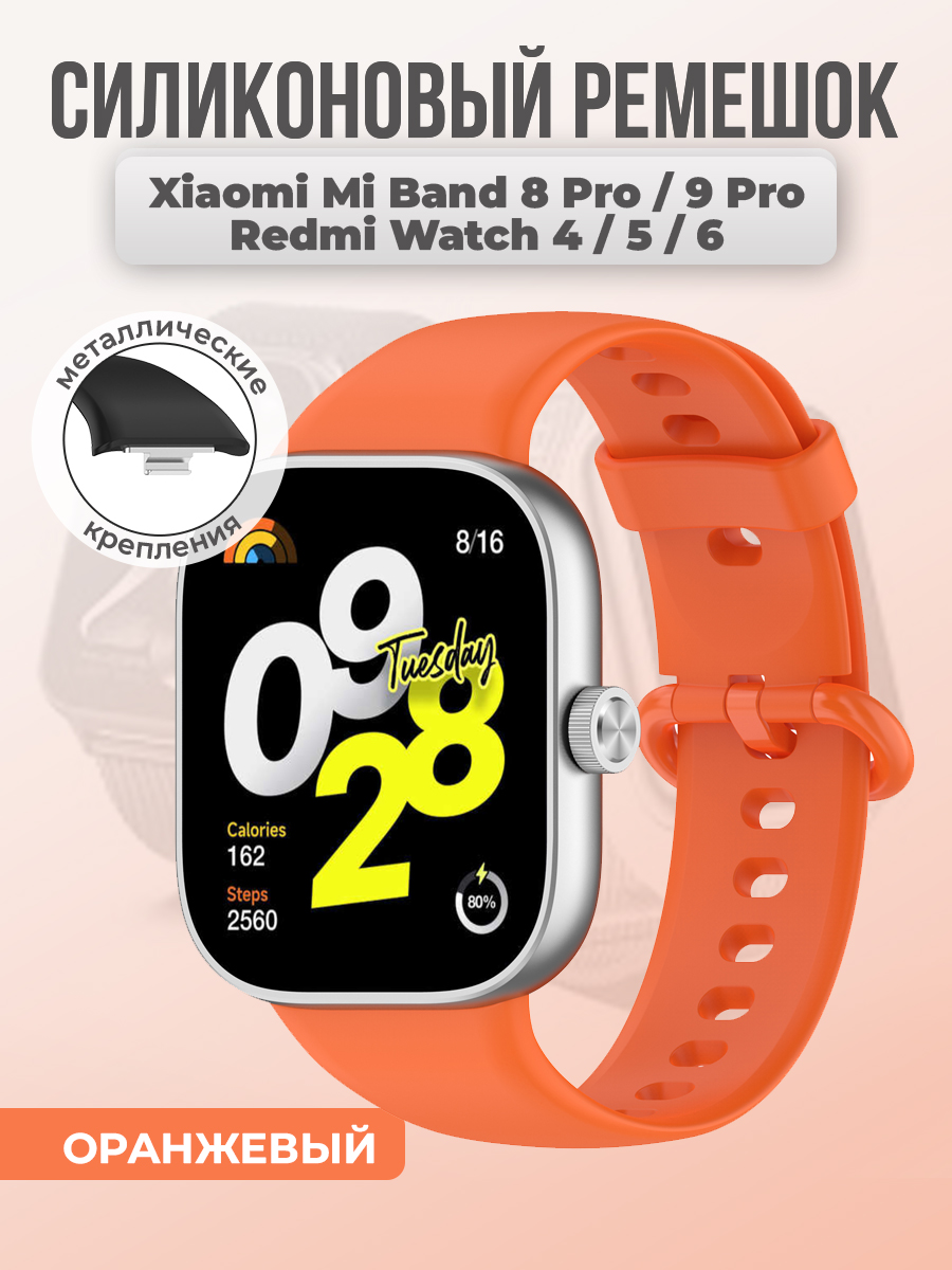 Cиликоновый ремешок для Xiaomi Mi Band 8 Pro/9 Pro и Redmi Watch 4/5/6, оранжевый
