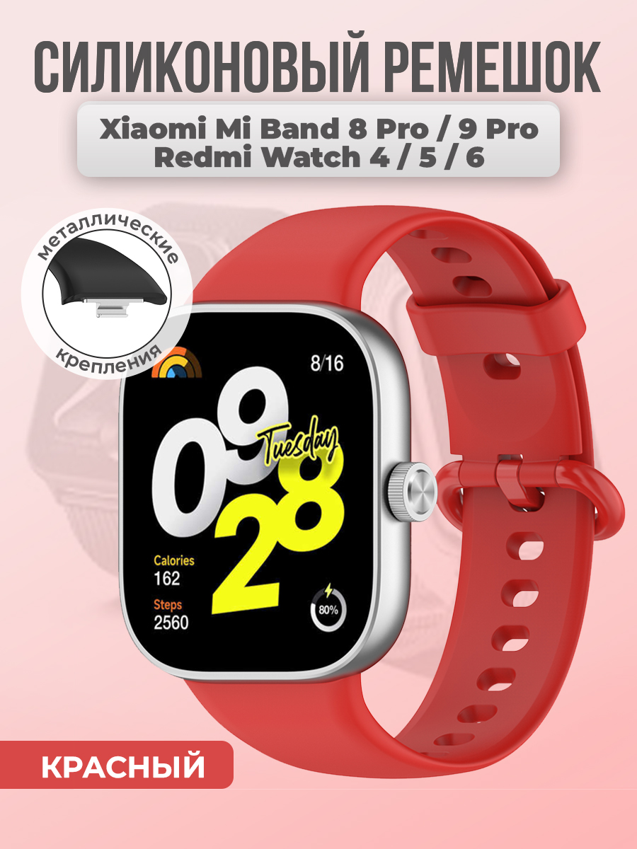Cиликоновый ремешок для Xiaomi Mi Band 8 Pro/9 Pro и Redmi Watch 4/5/6, красный
