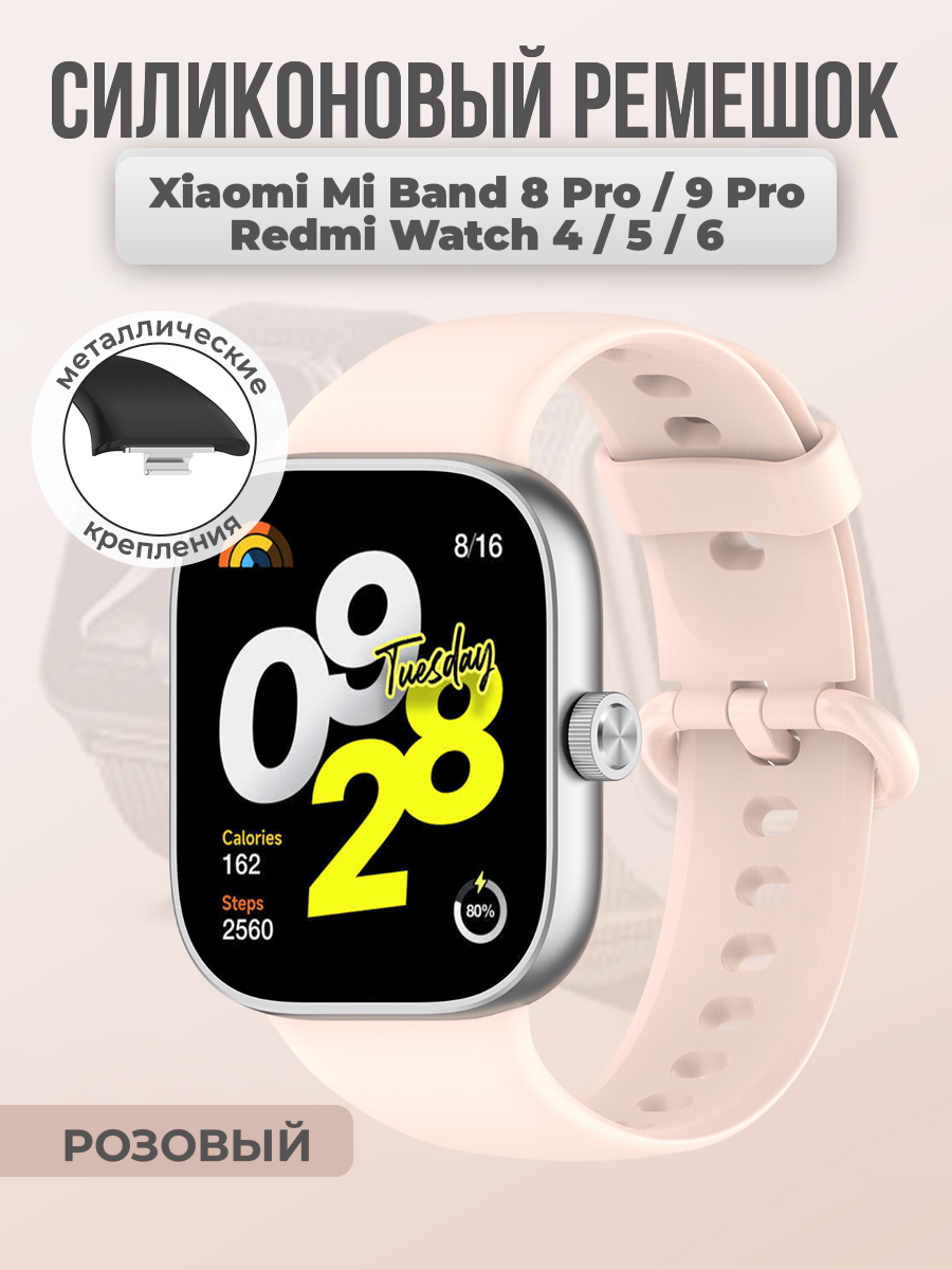 Cиликоновый ремешок для Xiaomi Mi Band 8 Pro/9 Pro и Redmi Watch 4/5/6, розовый