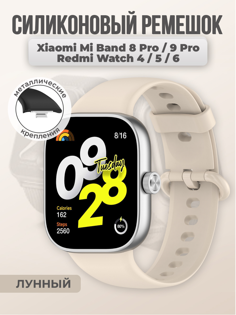 Cиликоновый ремешок для Xiaomi Mi Band 8 Pro/9 Pro и Redmi Watch 4/5/6, лунный