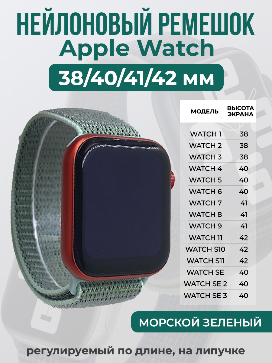 Нейлоновый ремешок на липучке для Apple Watch 1-9 / SE (38/40/41 мм), регулируемый по длине, морской зеленый