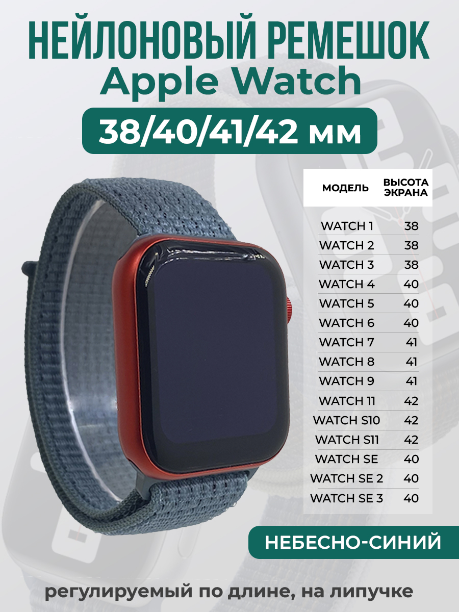 Нейлоновый ремешок на липучке для Apple Watch 1-9 / SE (38/40/41 мм), регулируемый по длине, небесно-синий