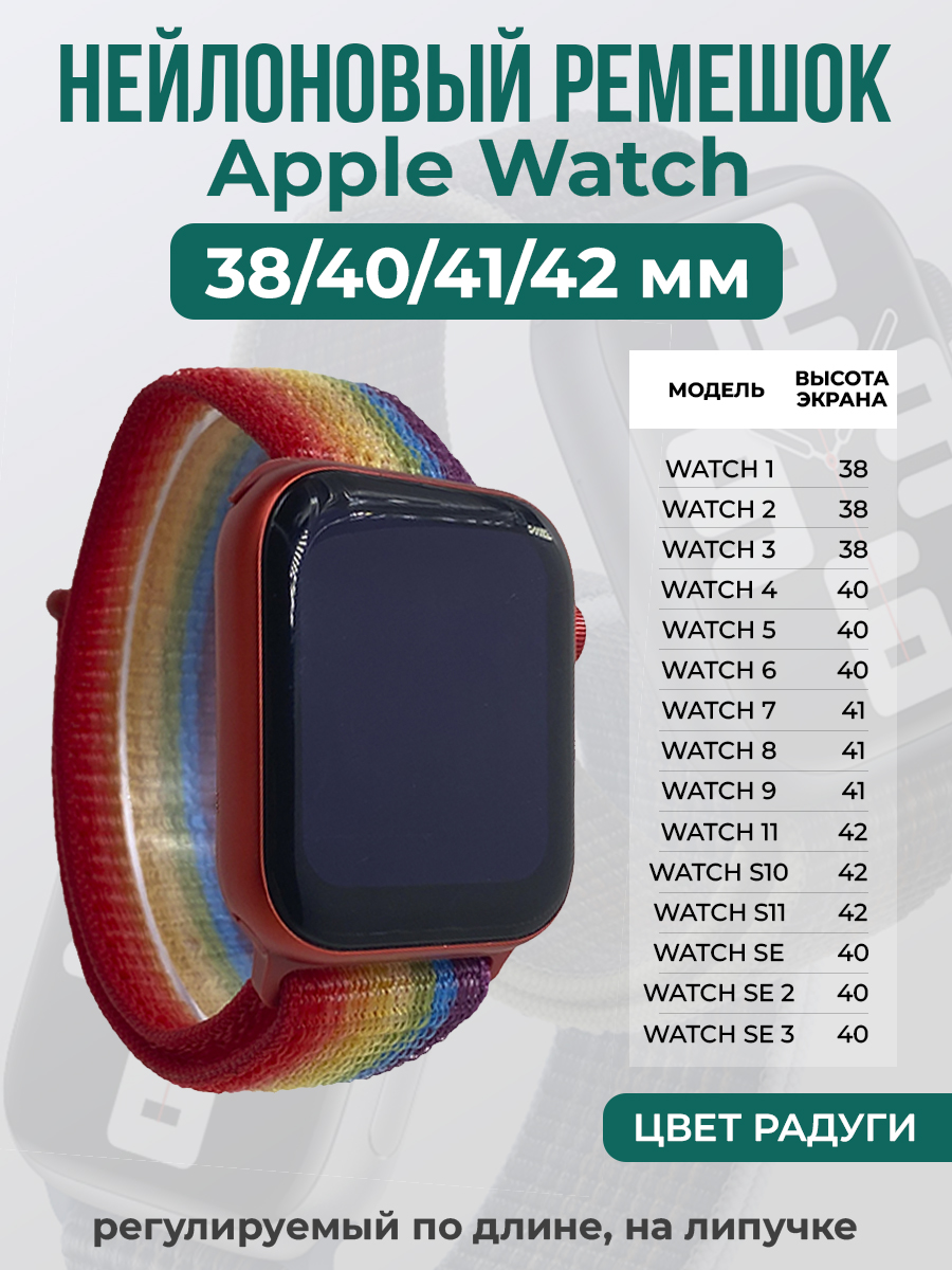 Нейлоновый ремешок на липучке для Apple Watch 1-9 / SE (38/40/41 мм), регулируемый по длине, цвет радуги