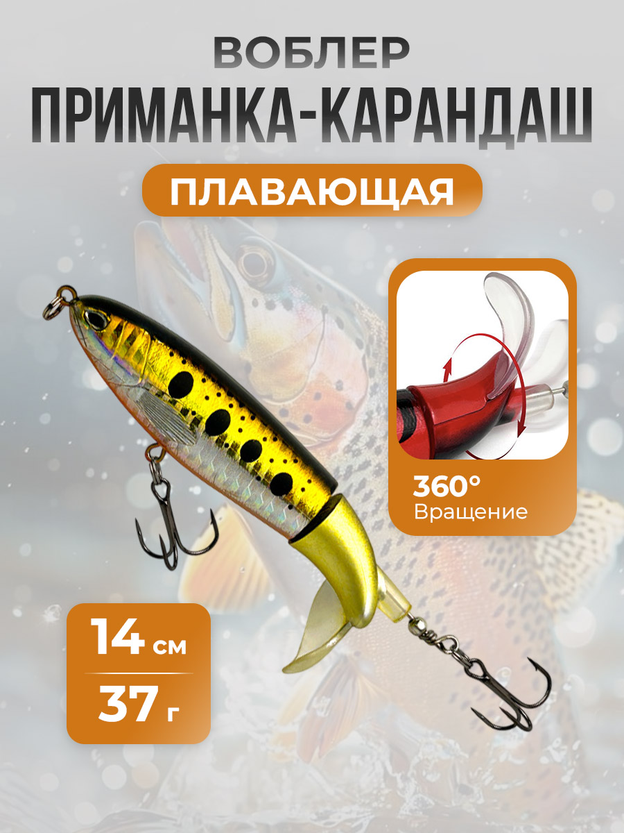 Приманка-карандаш класса "Плавающие (floating) - F", 14 см, 37 г — это современная приманка для рыбалки, разработанная для максимального привлечения хищной рыбы и повышения связности попаданий в условиях как на стоячей воде, так и в быстрой струе. Ее уникальная конструкция в форме цилиндрического карандаша обеспечивает стабильное полетное поведение при забросе и небольшую боковую раскачку на свободном движении, что делает ее заметной и узнаваемой на воде. Основной принцип работы основан на двух ключевых элементах: плавучесть и динамическая вибрация. Тело приманки изготовлено из прочного и легкого по весу материала, что позволяет ей удерживаться на плаву даже при активной проводке. Водонепроницаемая и жесткая конструкция обеспечивает долговечность и устойчивость к износу при частом контакте с донной поверхностью и растительностью.
