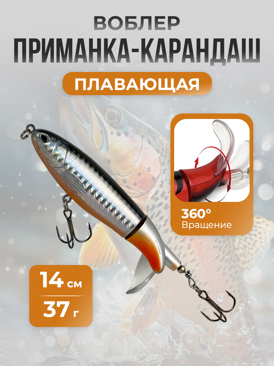 Приманка-карандаш класса "Плавающие (floating) - F", 14 см, 37 г — это современная приманка для рыбалки, разработанная для максимального привлечения хищной рыбы и повышения связности попаданий в условиях как на стоячей воде, так и в быстрой струе. Ее уникальная конструкция в форме цилиндрического карандаша обеспечивает стабильное полетное поведение при забросе и небольшую боковую раскачку на свободном движении, что делает ее заметной и узнаваемой на воде. Основной принцип работы основан на двух ключевых элементах: плавучесть и динамическая вибрация. Тело приманки изготовлено из прочного и легкого по весу материала, что позволяет ей удерживаться на плаву даже при активной проводке. Водонепроницаемая и жесткая конструкция обеспечивает долговечность и устойчивость к износу при частом контакте с донной поверхностью и растительностью.