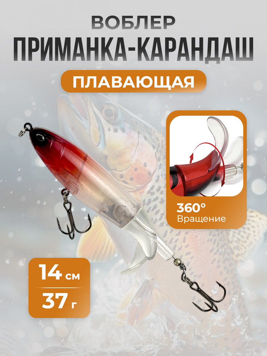 Приманка-карандаш класса "Плавающие (floating) - F", 14 см, 37 г — это современная приманка для рыбалки, разработанная для максимального привлечения хищной рыбы и повышения связности попаданий в условиях как на стоячей воде, так и в быстрой струе. Ее уникальная конструкция в форме цилиндрического карандаша обеспечивает стабильное полетное поведение при забросе и небольшую боковую раскачку на свободном движении, что делает ее заметной и узнаваемой на воде. Основной принцип работы основан на двух ключевых элементах: плавучесть и динамическая вибрация. Тело приманки изготовлено из прочного и легкого по весу материала, что позволяет ей удерживаться на плаву даже при активной проводке. Водонепроницаемая и жесткая конструкция обеспечивает долговечность и устойчивость к износу при частом контакте с донной поверхностью и растительностью.