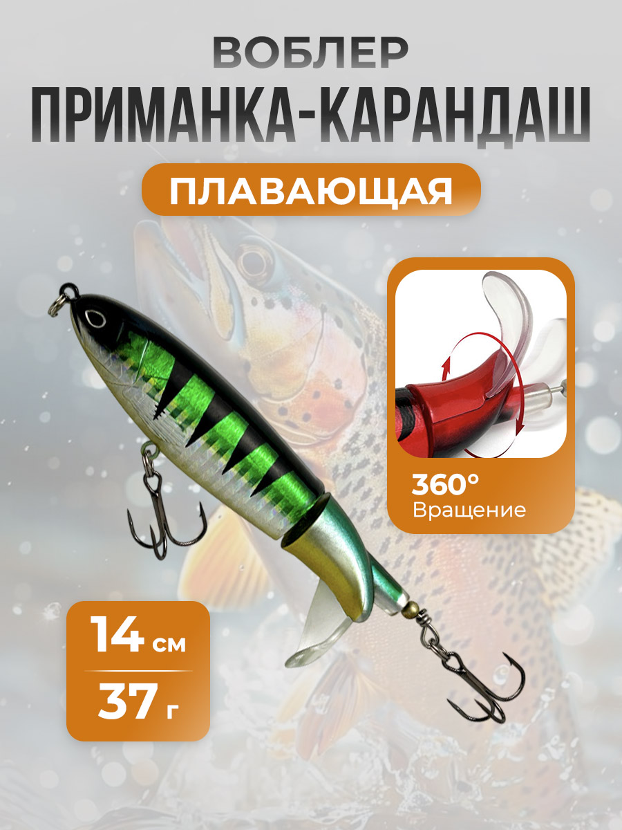 Приманка-карандаш класса "Плавающие (floating) - F", 14 см, 37 г — это современная приманка для рыбалки, разработанная для максимального привлечения хищной рыбы и повышения связности попаданий в условиях как на стоячей воде, так и в быстрой струе. Ее уникальная конструкция в форме цилиндрического карандаша обеспечивает стабильное полетное поведение при забросе и небольшую боковую раскачку на свободном движении, что делает ее заметной и узнаваемой на воде. Основной принцип работы основан на двух ключевых элементах: плавучесть и динамическая вибрация. Тело приманки изготовлено из прочного и легкого по весу материала, что позволяет ей удерживаться на плаву даже при активной проводке. Водонепроницаемая и жесткая конструкция обеспечивает долговечность и устойчивость к износу при частом контакте с донной поверхностью и растительностью.