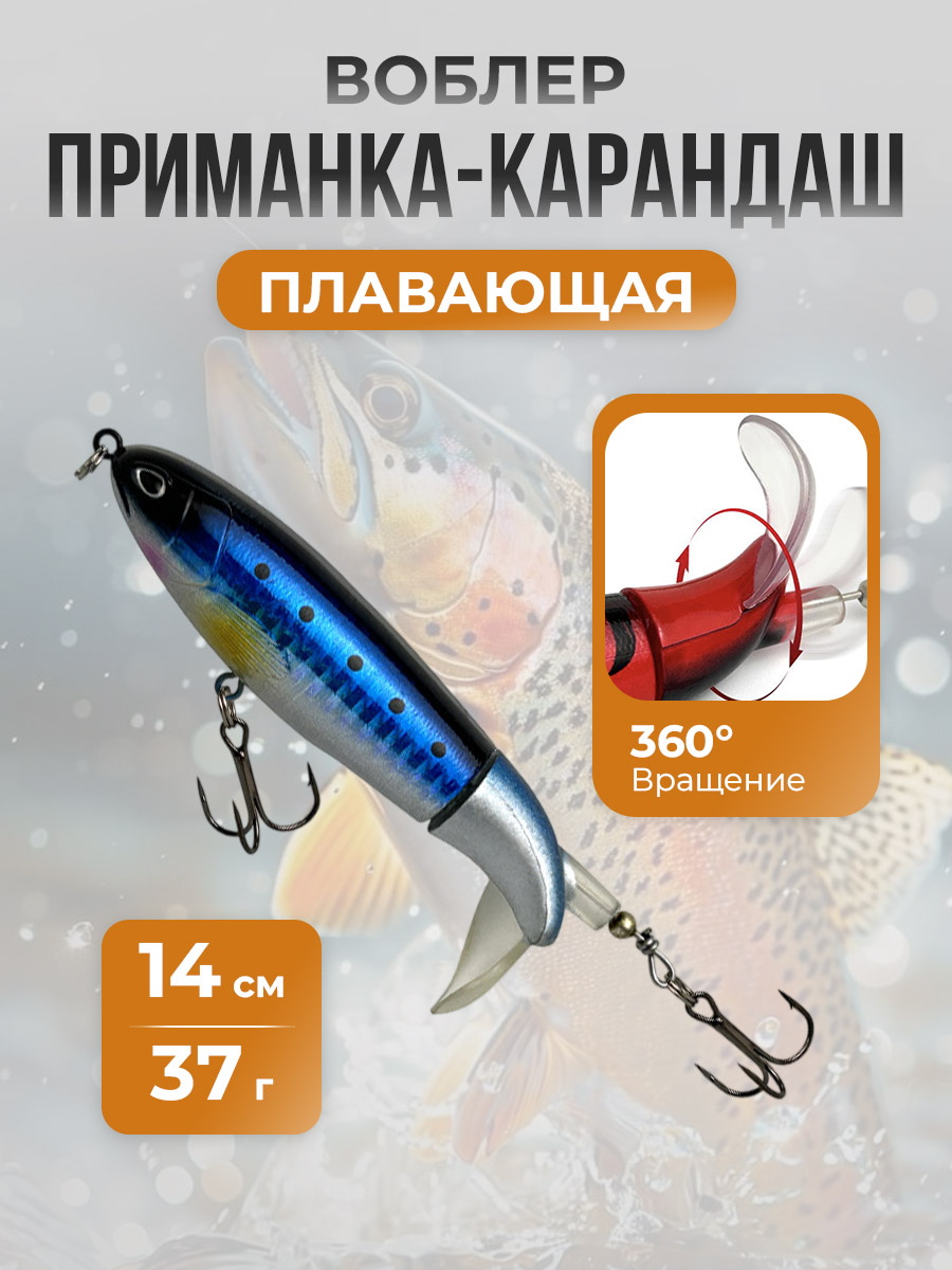 Приманка-карандаш класса "Плавающие (floating) - F", 14 см, 37 г — это современная приманка для рыбалки, разработанная для максимального привлечения хищной рыбы и повышения связности попаданий в условиях как на стоячей воде, так и в быстрой струе. Ее уникальная конструкция в форме цилиндрического карандаша обеспечивает стабильное полетное поведение при забросе и небольшую боковую раскачку на свободном движении, что делает ее заметной и узнаваемой на воде. Основной принцип работы основан на двух ключевых элементах: плавучесть и динамическая вибрация. Тело приманки изготовлено из прочного и легкого по весу материала, что позволяет ей удерживаться на плаву даже при активной проводке. Водонепроницаемая и жесткая конструкция обеспечивает долговечность и устойчивость к износу при частом контакте с донной поверхностью и растительностью.