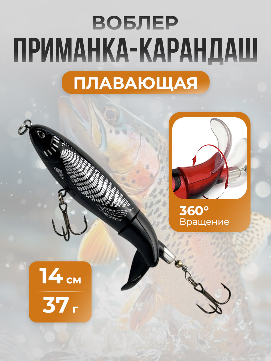 Приманка-карандаш класса "Плавающие (floating) - F", 14 см, 37 г — это современная приманка для рыбалки, разработанная для максимального привлечения хищной рыбы и повышения связности попаданий в условиях как на стоячей воде, так и в быстрой струе. Ее уникальная конструкция в форме цилиндрического карандаша обеспечивает стабильное полетное поведение при забросе и небольшую боковую раскачку на свободном движении, что делает ее заметной и узнаваемой на воде. Основной принцип работы основан на двух ключевых элементах: плавучесть и динамическая вибрация. Тело приманки изготовлено из прочного и легкого по весу материала, что позволяет ей удерживаться на плаву даже при активной проводке. Водонепроницаемая и жесткая конструкция обеспечивает долговечность и устойчивость к износу при частом контакте с донной поверхностью и растительностью.