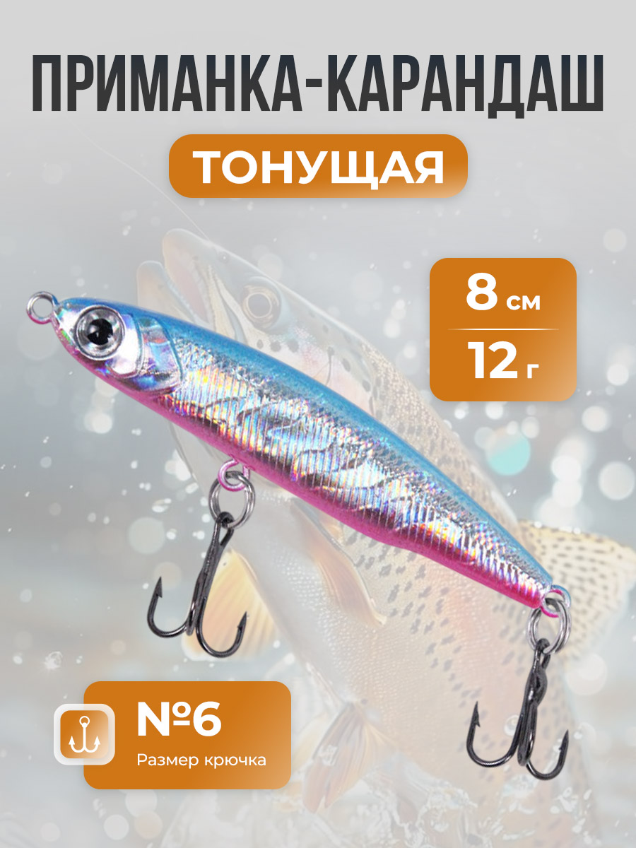 Воблер приманка-карандаш, тонущая 8 см/12 г, сине-розовая