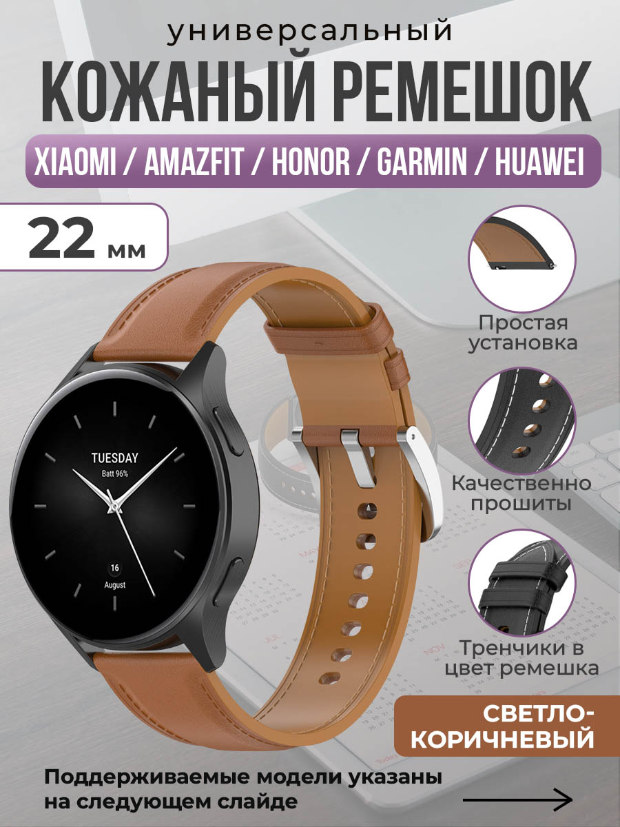 Универсальный кожаный ремешок для Xiaomi, Amazfit, Honor, Garmin, Huawei, 22 мм, светло-коричневый