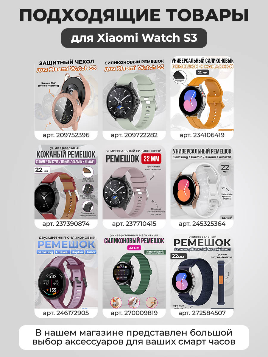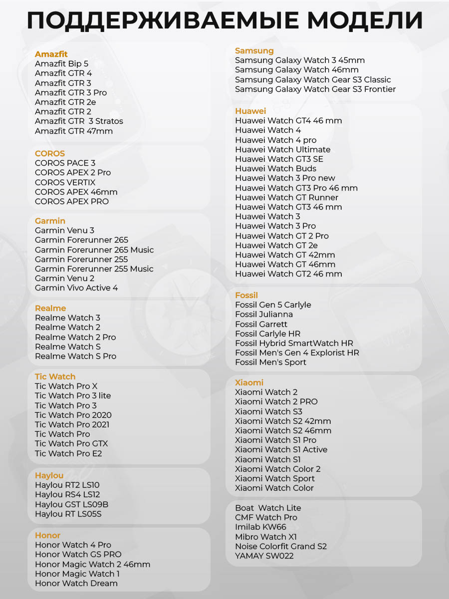 Представляем вашему вниманию Универсальный кожаный ремешок для Xiaomi, Amazfit, Honor, Garmin, Huawei, 22 мм — истинный образец стиля и элегантности для ваших смарт-часов. Ремешок для часов универсальный 22 мм был разработан с учетом потребностей потребителей, что делает его подходящим для множества популярных брендов, таких как Amazfit GTR,BIP (Амазфит жтр, бип), Garmin Forerunner/Venu/Vivo (Форераннер, Вену, Виво); Samsung Galaxy Watch (Самсунг Гелакси Вотч) Huawei Watch (Хуавей Вотч) Honor Watch (Хонор Вотч) Realme (Риалми) Haylou (Хайлоу) Xiaomi (Сиаоми/Сяоми/Ксиоми/Ксиаоми), Mibro (Мибро), Fossil Gen (Фоссил Джен), TicWatch Pro (ТикВотч Про). Подробный перечень совместимых моделей можно посмотреть в галерее изображений.