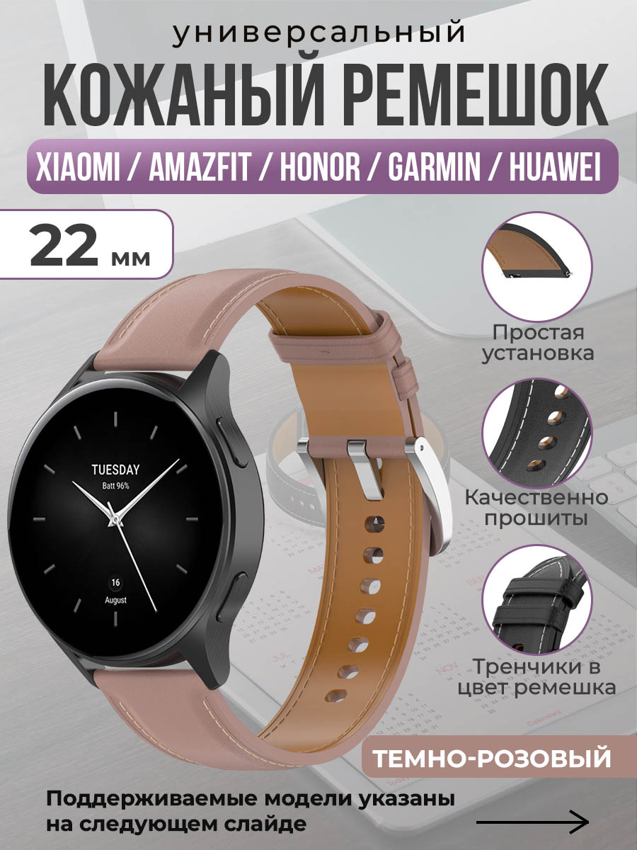 Универсальный кожаный ремешок для Xiaomi, Amazfit, Honor, Garmin, Huawei, 22 мм, темно-розовый