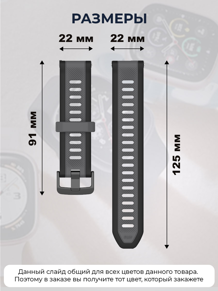 Кроме того, широкий силиконовый ремешок явлется универсальным и подходит для узкого запястья. Этот ремешок для смарт часов 22мм регулируется по длине и подойдет на мужское, женское и детское запястье