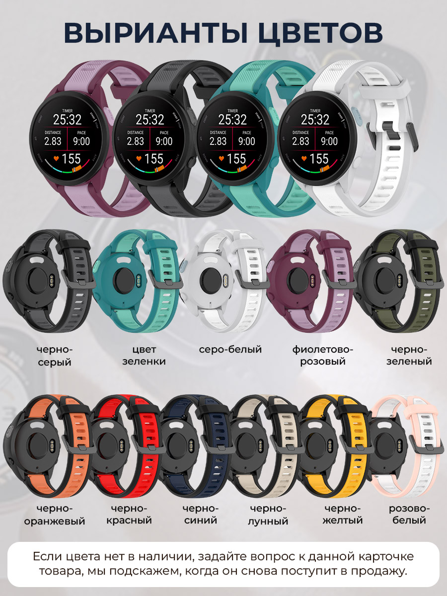 Ремешок для Amazfit из гипоаллергенного силикона идеален для занятия спортом, фитнесом и sport active или повседневной носки. Ремешок для смарт-часов Samsung Galaxy Watch имеет стильный дизайн с двумя цветами, который добавляет визуальную привлекательность.Ремешок с пряжкой 22 мм креко держится на запястье, что особенно важно во время спортивных тренировок.