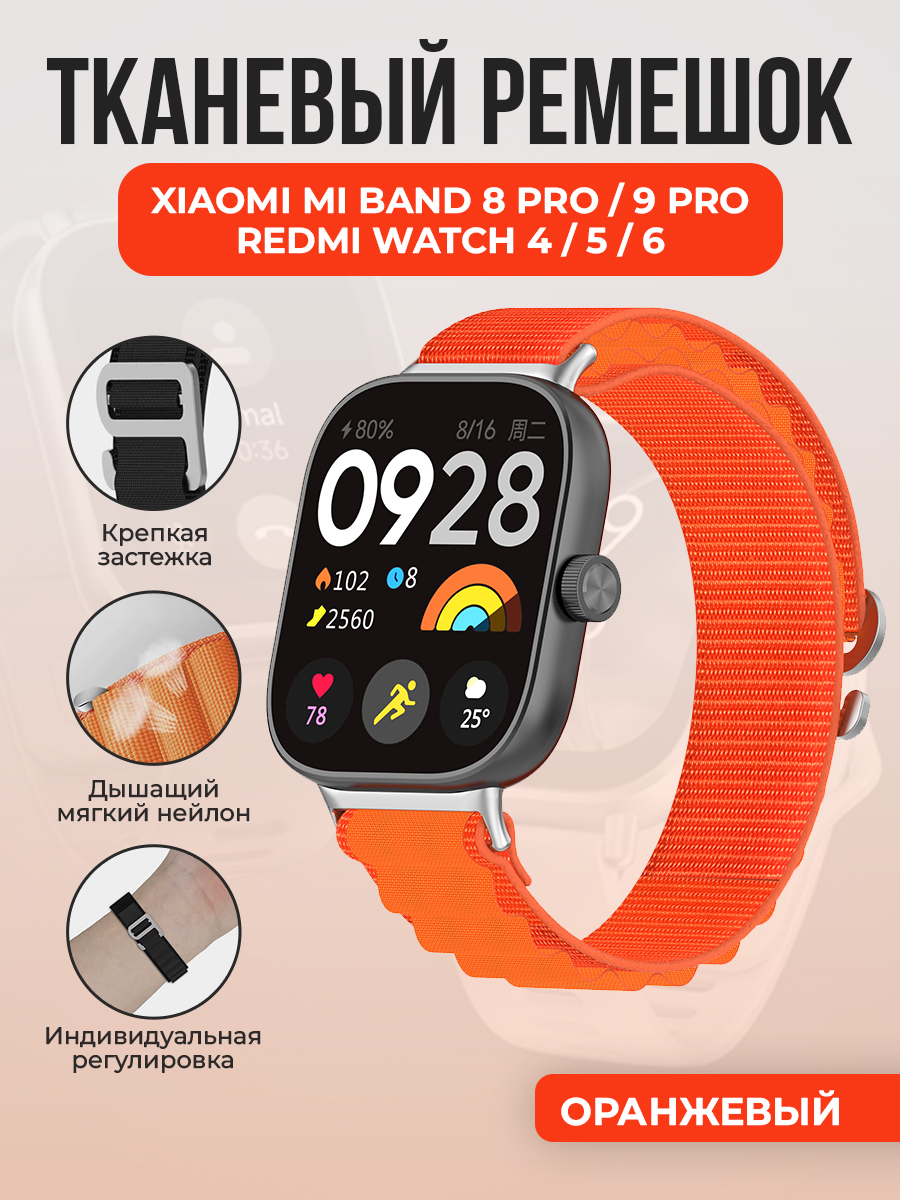 Тканевый ремешок для Xiaomi Mi Band 8 Pro/9 Pro и Redmi Watch 4/5/6, оранжевый