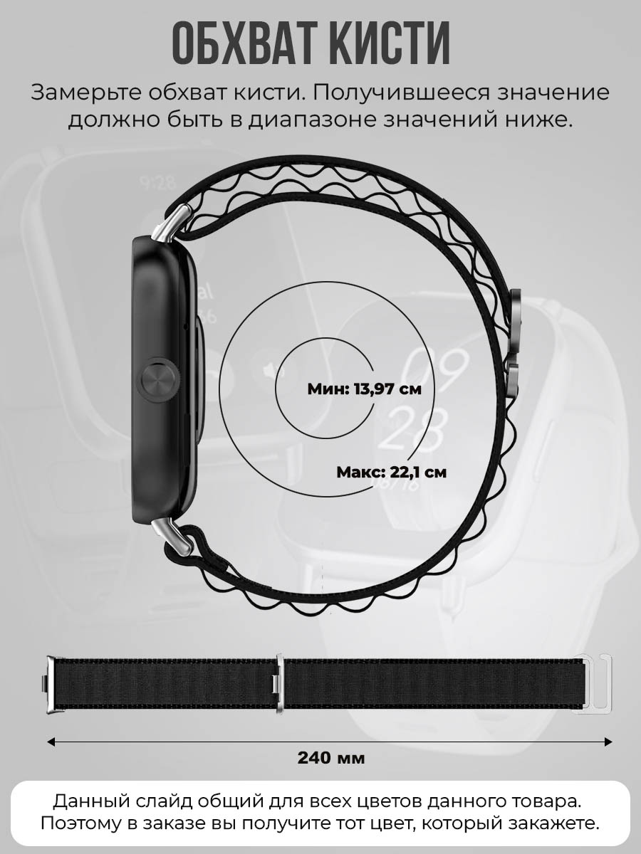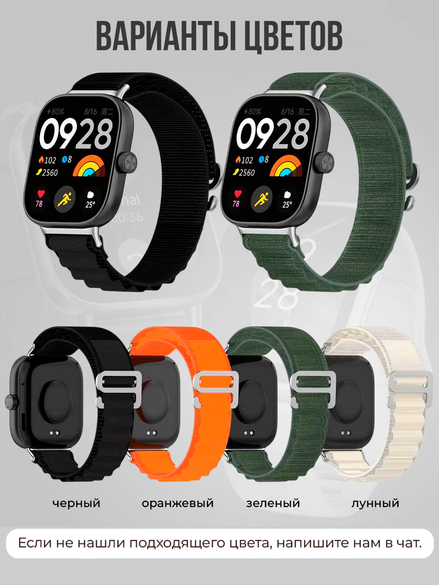 Тканевый ремешок для Xiaomi Mi Band 8 Pro / Xiaomi Mi Band 9 Pro / Redmi Watch 4 / Redmi Watch 5 / Redmi Watch 6, идеальный аксессуар для тех, кто ценит стиль и комфорт. Этот Ми Бенд 8 про ремешок изготовлен из высококачественного гипоаллергенного нейлона, что делает его безопасным для любого типа кожи. РЕмешок для Redmi Watch 5 легко подстраивается под запястье благодаря регулируемой длине, что позволяет использовать его как на мужских, так и на женских запястьях.