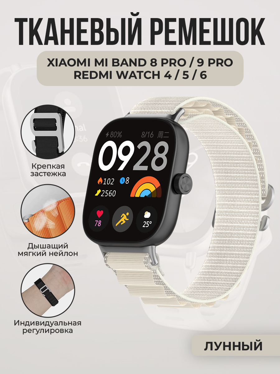 Тканевый ремешок для Xiaomi Mi Band 8 Pro/9 Pro и Redmi Watch 4/5/6, лунный