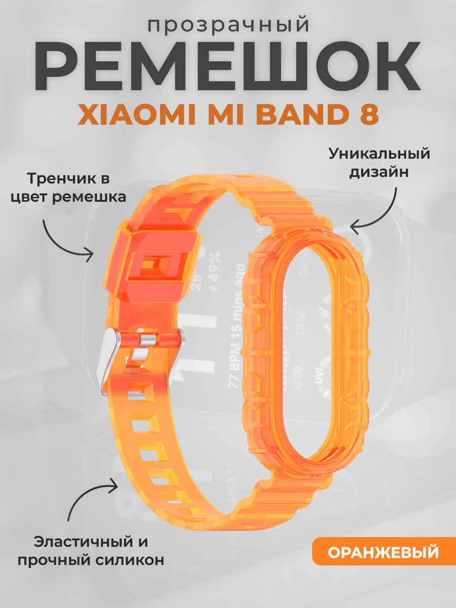 Прозрачный ремешок для Xiaomi Mi Band 8, оранжевый