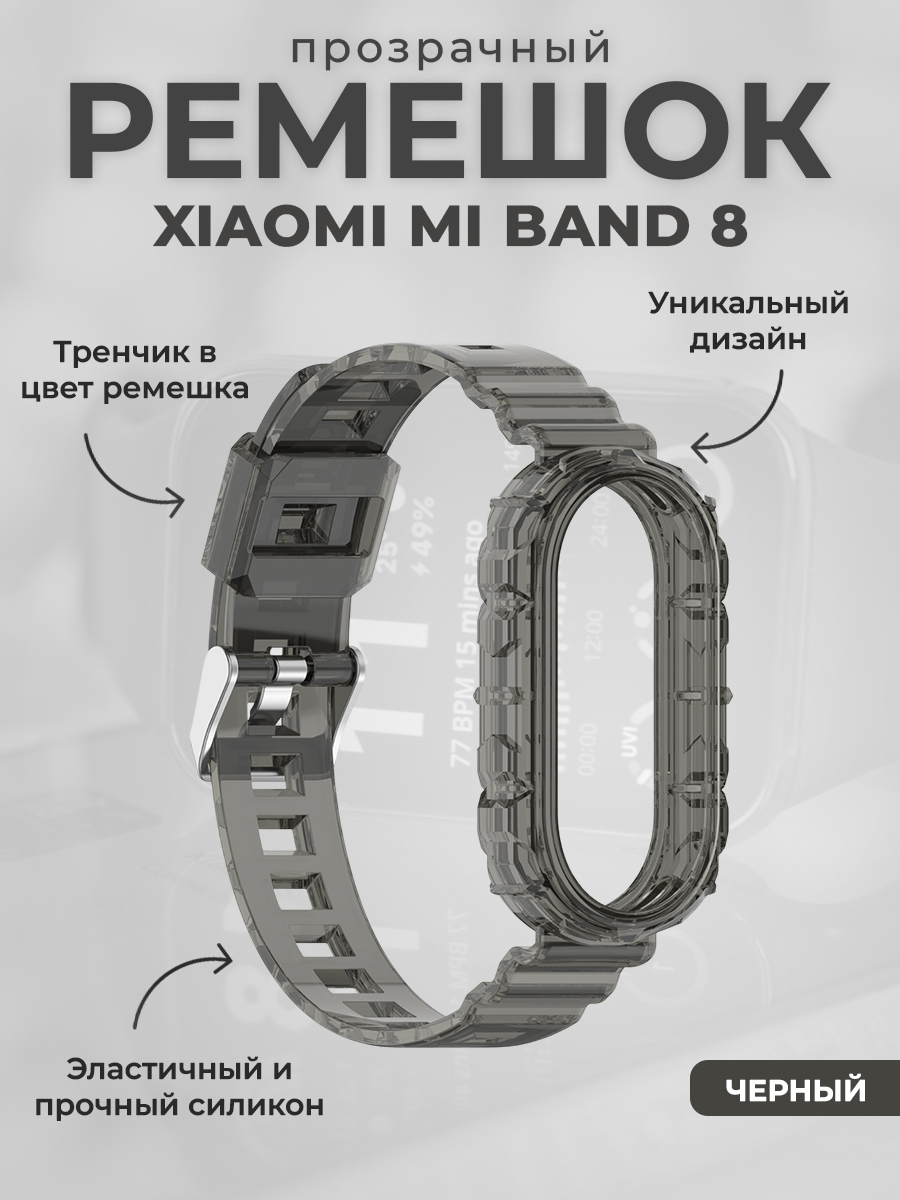Прозрачный ремешок для Xiaomi Mi Band 8, черный