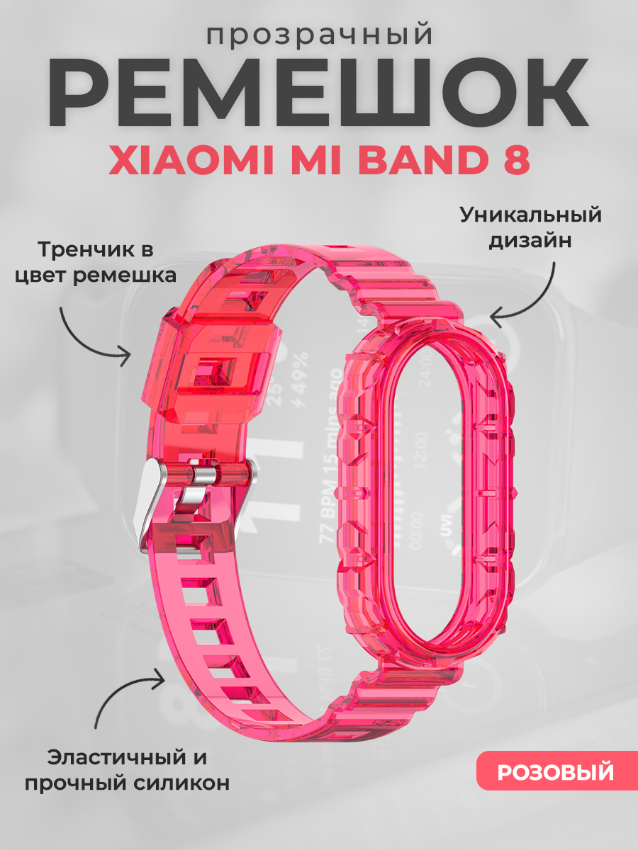 Прозрачный ремешок для Xiaomi Mi Band 8, розовый
