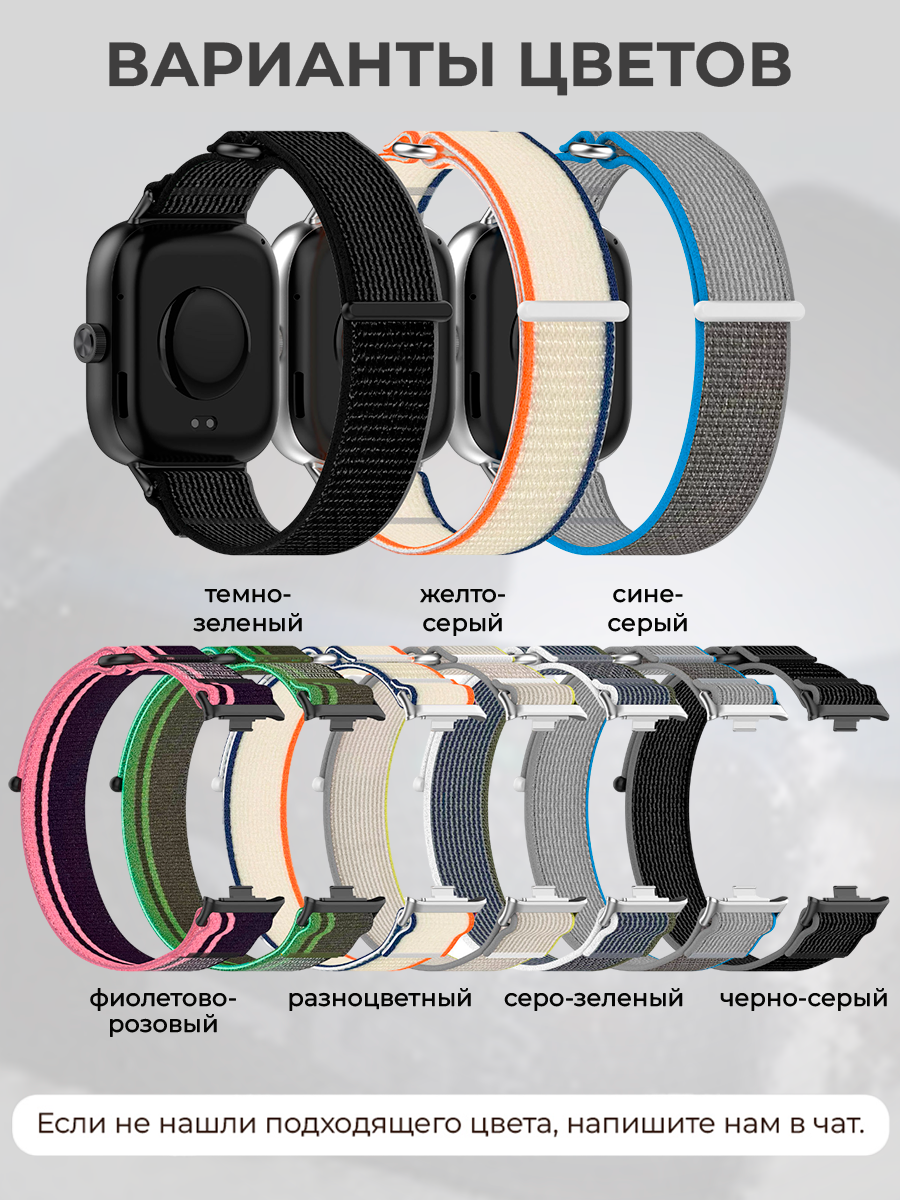 Также мужской ремешок Редми Вотч 4 (браслет для Redmi Watch 4) будет идеален для любителей разнообразия, предлагая как однотонные, так и разноцветные варианты, подходящие для любого случая. Этот текстильный ремешок для Редми Вотч 5 (браслет для Redmi Watch 5) для наручных умных часов может стать вашим незаменимым помощником в повседневной носке или во время активных занятий.