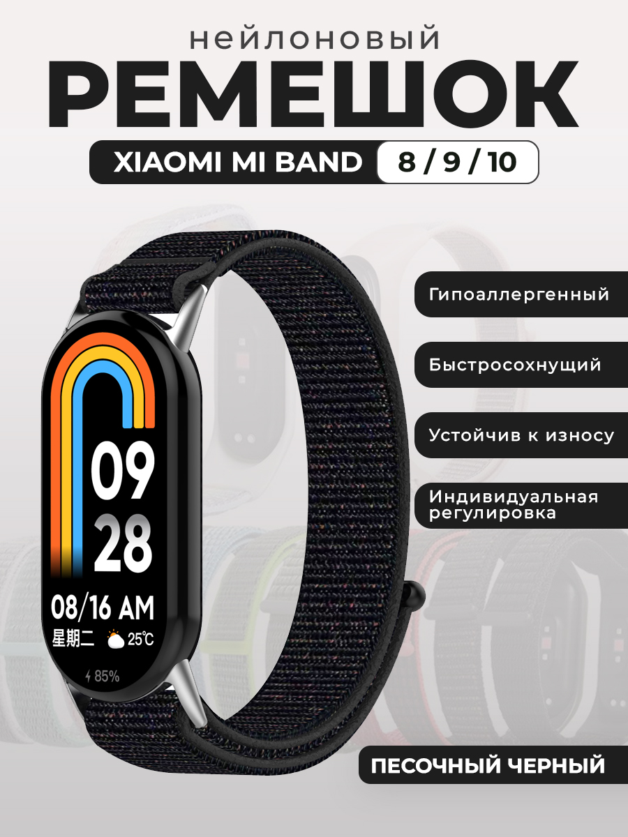 Нейлоновый ремешок для Xiaomi Mi Band 8/9/10, на липучке, песочный черный